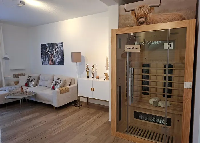 The 85 m² apartment welcomes travellers in the centre of Winterberg, located 2.1 km from the Sommerrodelbahn Winterberg. Grosszuegige Ferienwohnung "Perle Am Waltenberg" Mit Sauna - Nur 600 M Bis Zum Skilift - Zwei Wohnungen In Einer! is also situated in proximity to the Church of St. Jakobus.